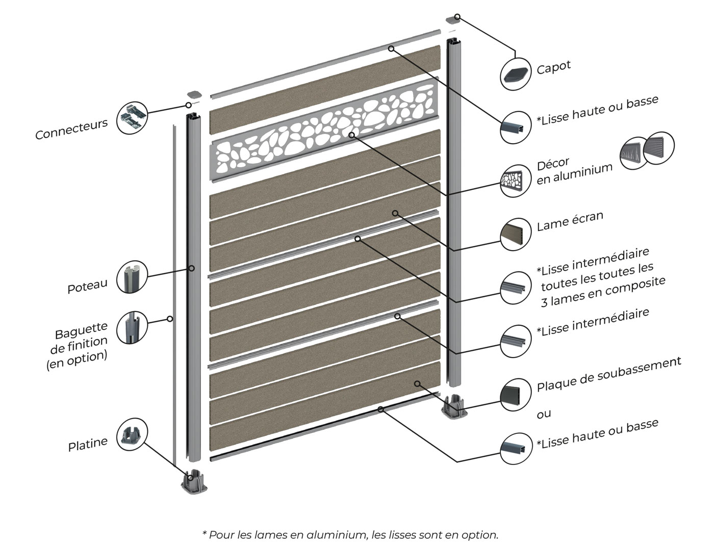 Une solution élégante et modulable qui allie le charme du bois à la modernité de l’aluminium. Grâce à sa conception astucieuse, vous composez vous-même votre écran brise vue.