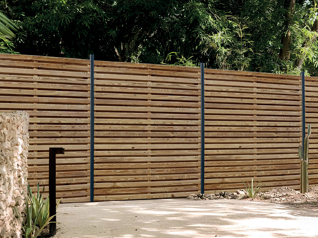 Authentiques et robustes, ces clôtures en Pin Sylvestre traité Classe IV sont idéales pour une intégration naturelle dans votre jardin. Le montage s’effectue facilement par emboîtement dans des poteaux aluminium rainurés, avec un assemblage par vis inox pour une finition propre et durable. Une belle alliance entre tradition et modernité.