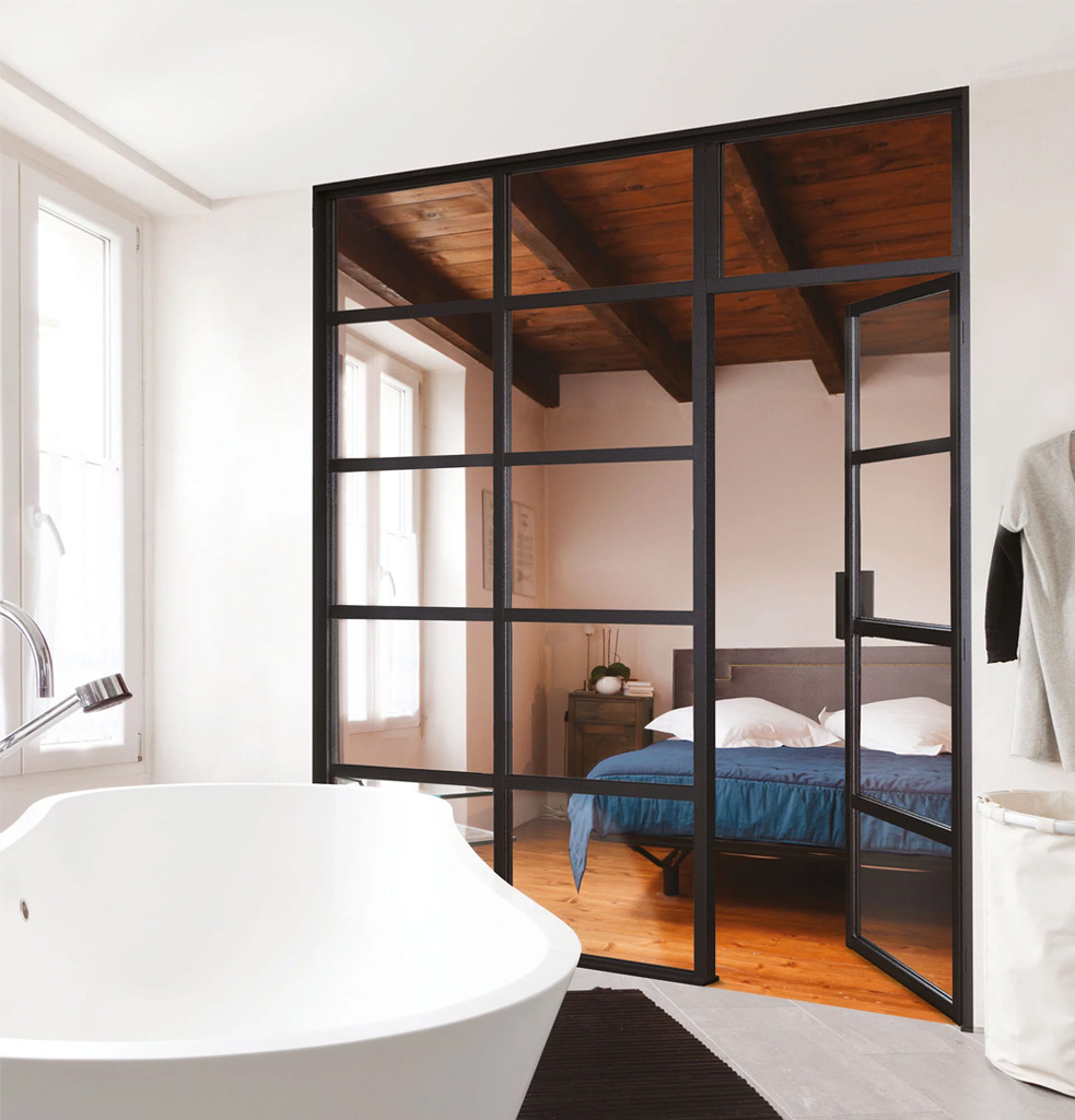 Vous aimez le style indus’ ? Les verrières type atelier sont faites pour vous. Noires, graphiques, avec ou sans soubassement, elles donnent tout de suite du caractère à un intérieur.